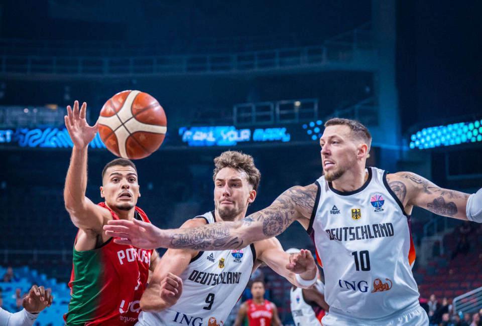 进入第四节比赛,施罗德上篮与两罚一中,罗接连命中两记三分,奥布斯特大号两分命中打停对手。泰斯暴扣,德国男篮已经打出13-0攻势,扩大65-51领先14分优势,威廉姆斯三分打破葡萄牙男篮得分荒。泰斯补篮得分,罗与特里斯坦-席尔瓦各中一记三分,邦加两罚一中扩大74-54领先优势。比赛已经提前失去胜负悬念,德国男篮借助末节攻防压制打崩对手,最终德国男篮大胜葡萄牙男篮晋级八强。